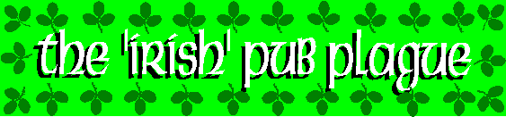 What's the problem? Real Irish Pubs On the continent, the first generation of Irish pubs was slightly different. They were places run by either Irish or British expatriates trying to recreate the feel of a British pub for their homesick compatriots. Depending on the local building style and the money they had available, they had some degree of physical resemblance to a real pub, but most important was the presence of some British or Irish keg beer (usually Guinness and John Bull bitter) and perhaps some British pub food. Not the best beer in the world, but good enough for someone desperate for a drop of ale in a sea of lager. These pubs weren't intended to appeal to the local population and usually didn't, being anglophone in the extreme. Given their limited target group, there wasn't room for a great number of them and it was usually limited to one or so per major city, depending on the number of people from the British Isles resident there. So while a city like Amsterdam could support 5 or 6, Düsseldorf only had 1 or 2. Fakes appear The concept of themed Irish pubs then began inevitably to seep onto the continent, partly through chains, such as O'Reilly's, and partly through opportunist publicans who saw it as a good ruse for boosting custom. Of course, this led to there being far too many such pubs to rely solely on their traditional customers, British and Irish expatriates. Now they were going for a wider group: young trendies, tourists, the sort of people so frightened by the unknown that they gratefully cling to anything vaguely familiar. Yes, they were after the McDonalds generation. Don't panic when in a foreign country, ignore the local bars and head for your nearest Irish theme pub, you know what to expect there. OK, it will be a pathetically ersatz and low-quality product, but hey, at least you won't have any nasty surprises. Guinness too cold to be tasted, overpriced and overcooked fish and chips, The Dubliners looping endlessly on the stereo. And they're spreading further and further. Go to Prague, go to Warsaw and there's a bloody Irish pub. I suppose they'll hit Vladivostock before the millenium. I'm surprised that no-one has yet started an operation called McDonnells - it's the obvious choice of name for a chain of fast-Irish outlets. It's just another aspect of the trend for everywhere in the world to become more alike, with each country exporting the worst of its culture to everyone else. Exactly why anyone from Düsseldorf, with its brilliant altbier pubs, would want to drink badly-served Guinness or horrible Kilkenny in plastic surroundings is totally beyond me. More and more, traditional, comfortable drinking establishments are being destroyed and replaced by cheap, fake copies of the same thing. It's enough to make you cry. That the drinks on sale are as ersatz as the décor goes without saying. You won't catch any of these 'Irish' pubs selling a cask-conditioned stout or bitter. Oh no, it might intimidate the customers if they were offered anything which had any flavour. What can I do? |