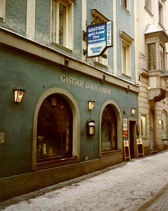 a look. A few years ago it had no brewery, despite being in Oberösterreich, the Austrian state with the strongest beer tradition. There is now a pub brewery (Josef), giving the visitor the chance to sample some truly local beers. According to my handy Czech pocket atlas, it's the third largest town in Austria and has a population of around 200,000. Well, you learn something new every day. But it must be a far-sized city, because the main railway station is an inconvenient tram ride away from the old centre. On the way to town, you should be able to spot the Klosterhof, a huge Stiegl beerhall and beer garden (it'll be on your left). These are the pubs I stumbled across in the city. |